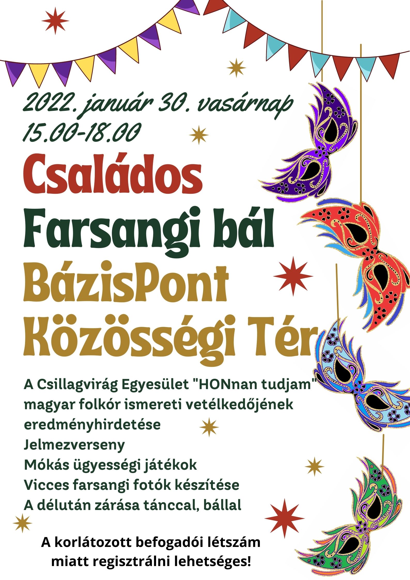 Minden hónap utolsó hétvégéjére családi programot szeretnénk szervezni, így január 30-án, vasárnap családos farsangi bulit szervezünk a BázisPont Közösségi Térbe. Részleteket facebook oldalunkon, a meghirdetett eseménynél találtok!