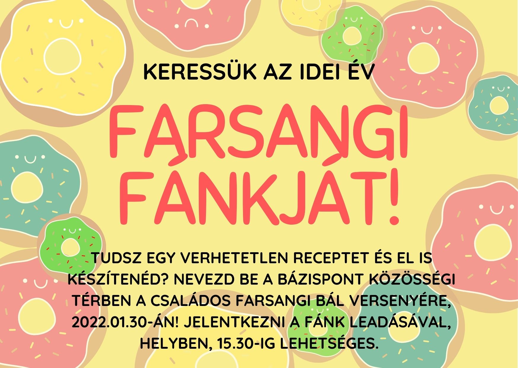 Tavaly online sajnos nem tudtuk kivitelezni, de idén belevágunk és meghirdetjük a FARSANGI FÁNK KÉSZÍTŐ VERSENYT!